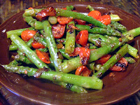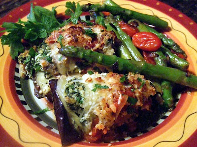 I served this delicious, yet non-fattening entrée with a side dish of asparagus and grape tomatoes, sautéed in olive oil with onion, garlic and red pepper flakes and a large, green salad.