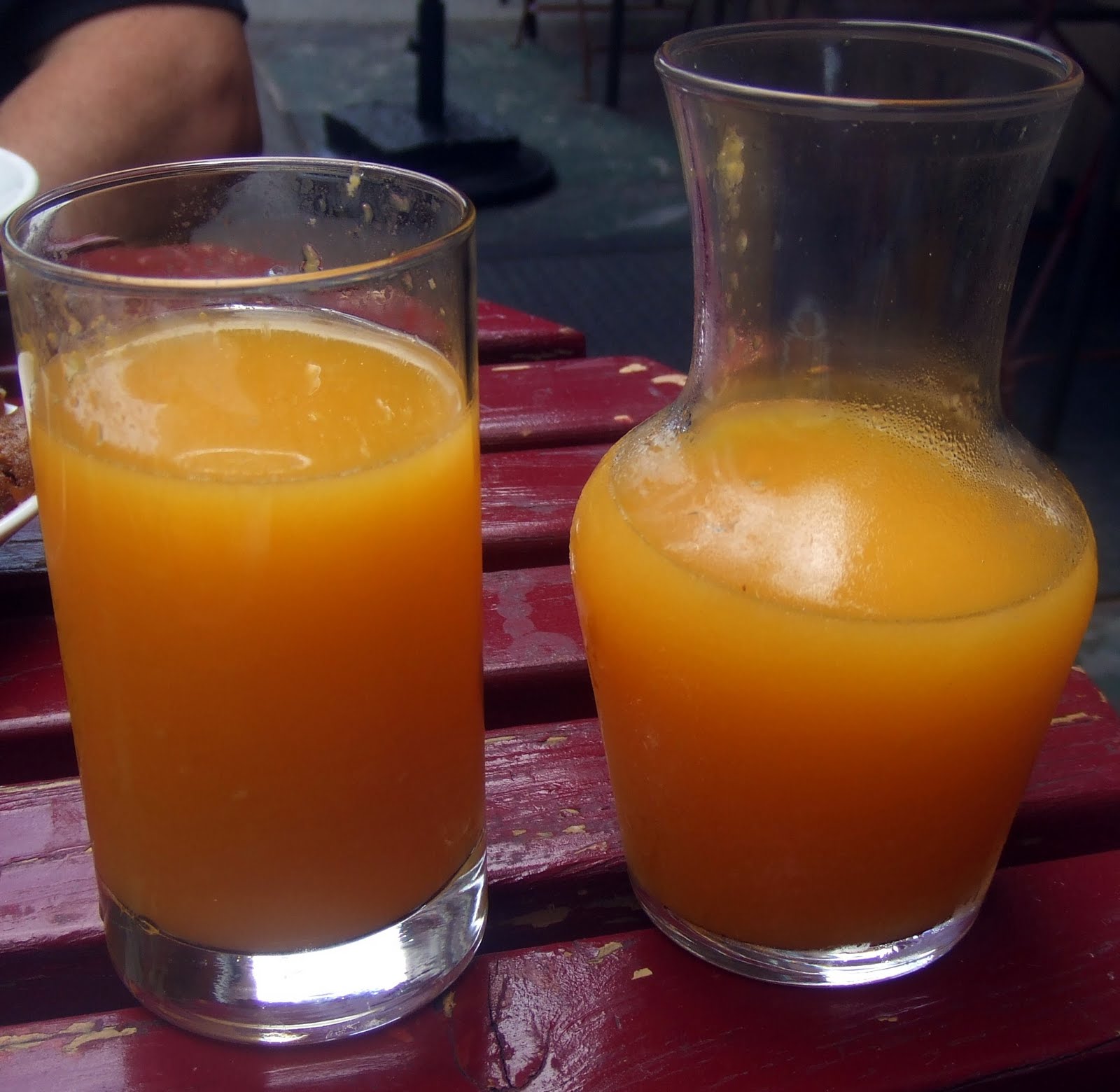 For our drinks, Tom had the red wine sangria. It was tart with a hint of sweetness from the diced apples in the glass. I opted for the fresh squeezed orange juice.