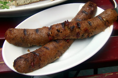 Tom wanted to try the vegan bacon but they were already out of it so he ordered the Italian sausage as well.