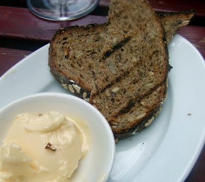 The toasted seven-grain bread was hearty and delicious, accompanied by a soy spread. The grill marks made it extra tasty and attractive.