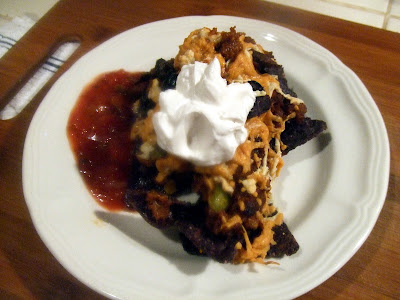 For the past few days, I had been craving nachos. A big plate of tortilla chips with ground “beef,” olives and ooey-gooey cheeze with salsa and sour cream on the side. Luckily, I had everything I needed to make it in the house. Well, almost everything…I would have loved some guacamole. Maybe next time.