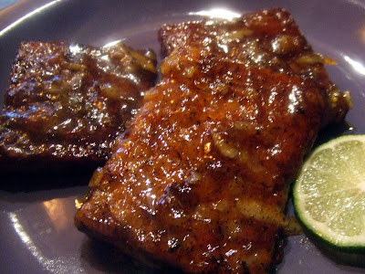 This recipe is a good example of this type of harmony. I read a recipe for orange glazed fish and thought it would make a great Extreme Vegan Makeover. It combines my love for spicy Cajun seasoning with Tom’s love of sweet, fruity marmalade. I don’t usually like foods that are glazed but here the spice and sweet are a marriage made in heaven.