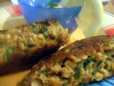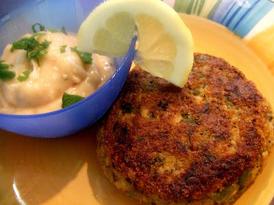 Well, Tom has been a little crabby lately and so I wanted to make him something special. In his pre-Vegan days, Tom loved crab cakes. I tasted them just once when he ordered them several years ago on City Island. Honestly, I didn’t like them much.