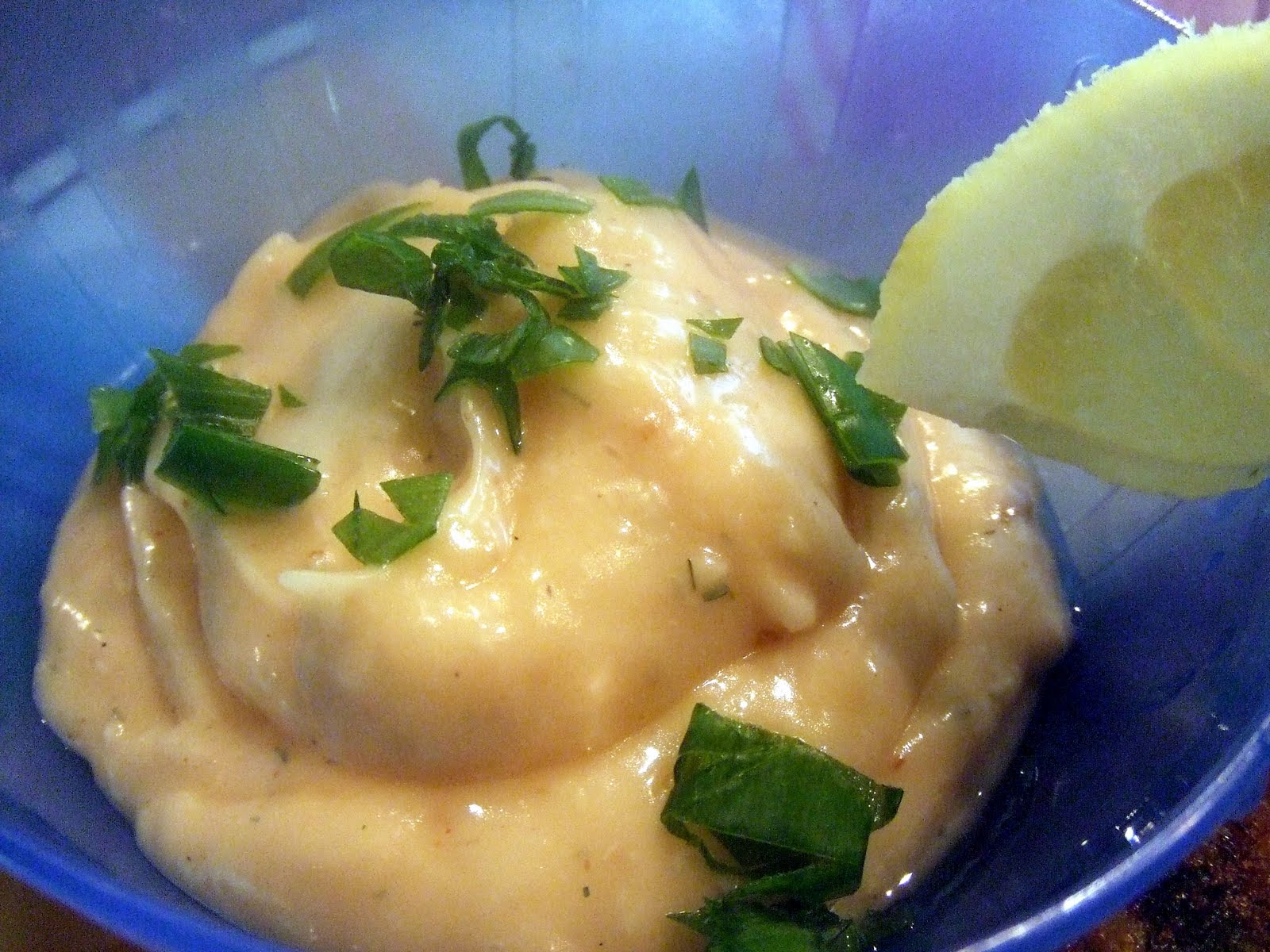 Mix all ingredients in a bowl. Taste to make sure it is to your desired level of spice. Refrigerate until ready to use. Garnish with scallion greens and lemon slices.