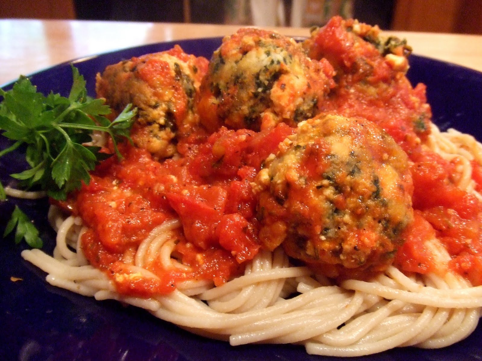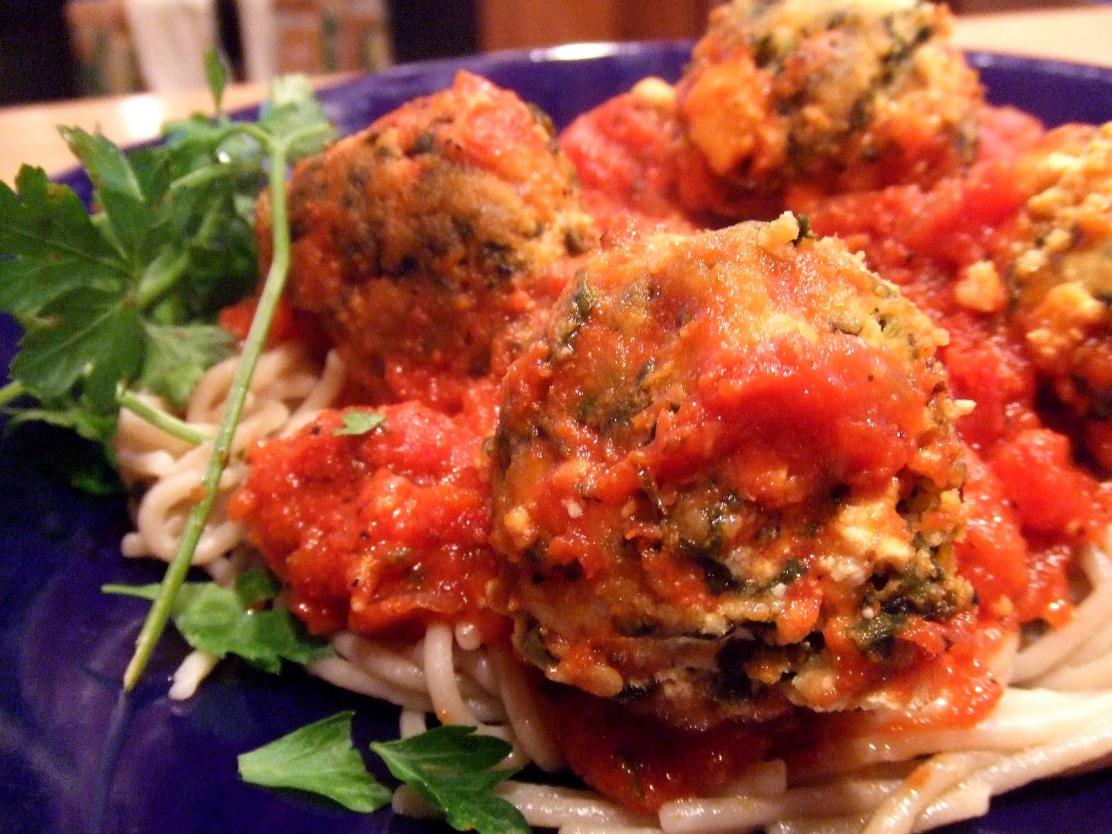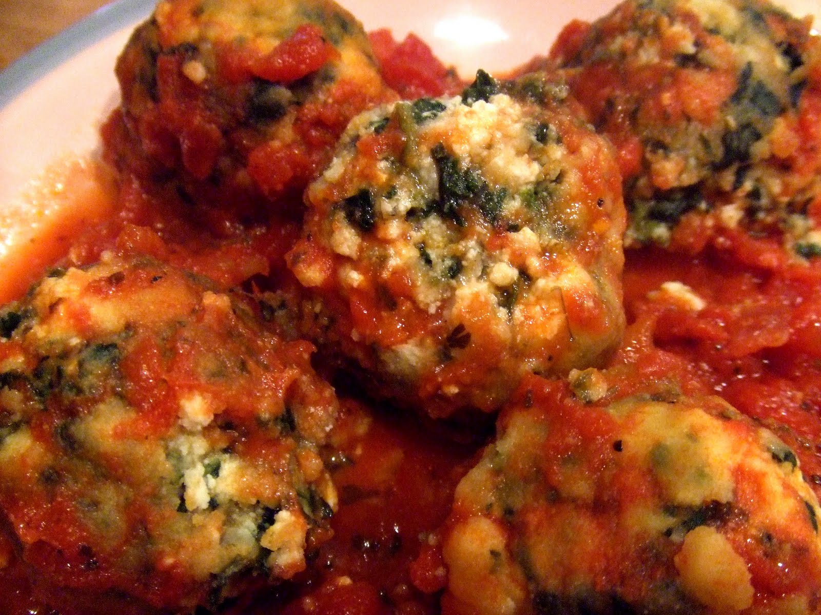 As I mentioned above, I cooked the Gnudi Balls in my Marinara sauce for about 5 -8 minutes. Then I served them atop brown rice pasta, covered with more sauce and Vegan grated parmesan.