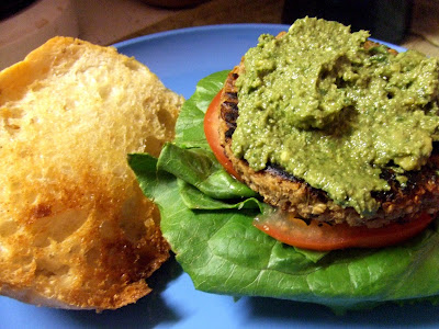 We love the pesto on toasted bread topped with roasted red peppers, thinned out as a pasta sauce or as a condiment on top of a delicious veggie burger! The possibilites are endless!