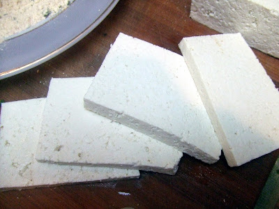 Cut the tofu into 8 slices. I do this by cutting the block of tofu in half width-wise. Then I slice each half into 4 thin rectangular slices.