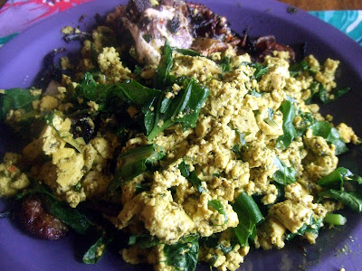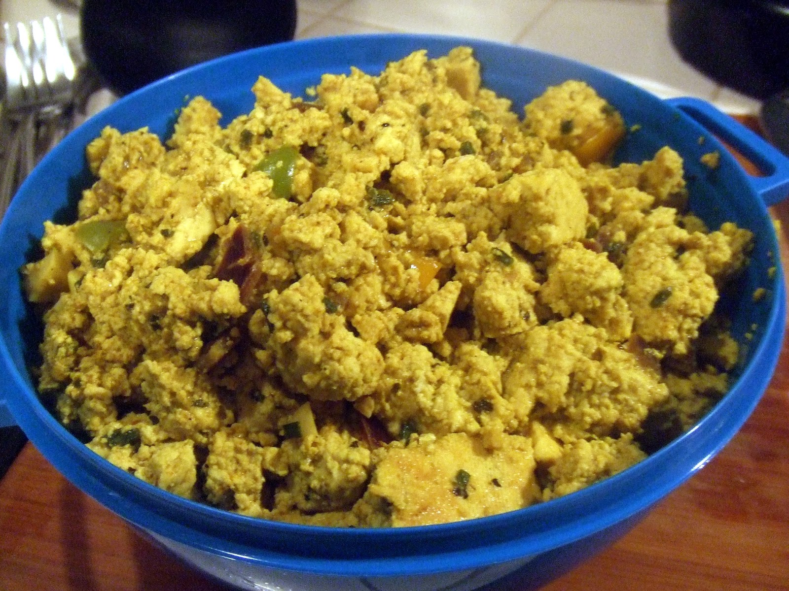 When I first learned to make tofu scramble, I added so many ingredients it was way too filling for breakfast. With onions, peppers, mushrooms and greens along with a side of home fries, it was a meal better suited for dinner.