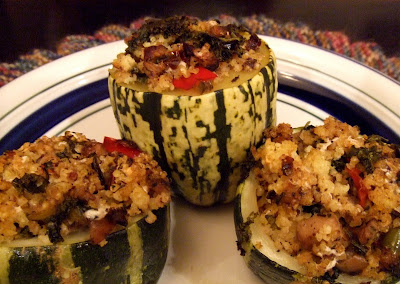 The “V” Word continues to celebrate VeganMoFo, the month of delicious Vegan food, with the other 25 letters of the alphabet. Today “K” is for Kale, Apple and Parsnip Stuffed Squash.