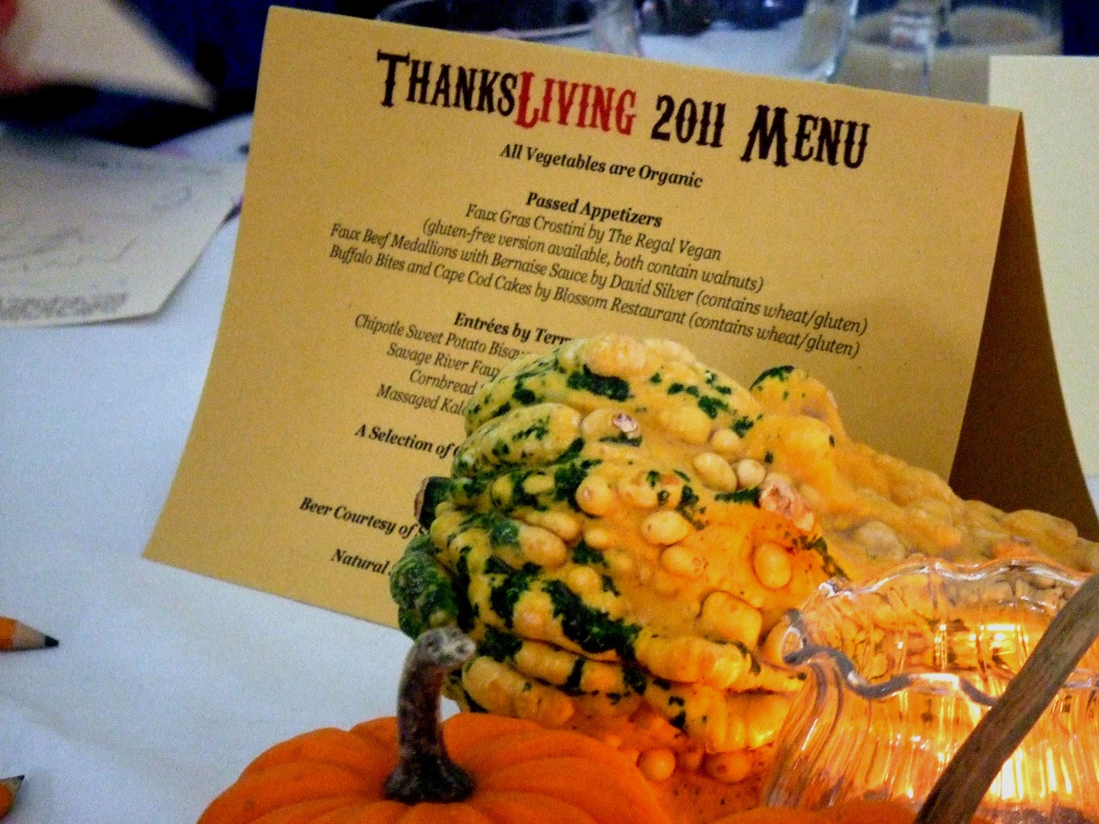 The “V” Word continues its celebration of VeganMoFo, a month of Vegan food, with the other 25 letters of the alphabet. Today’s letter is extra-special because it stands for my favorite event at my very favorite place in the world. “T” is for ThanksLiving at Woodstock Farm Animal Sanctuary.