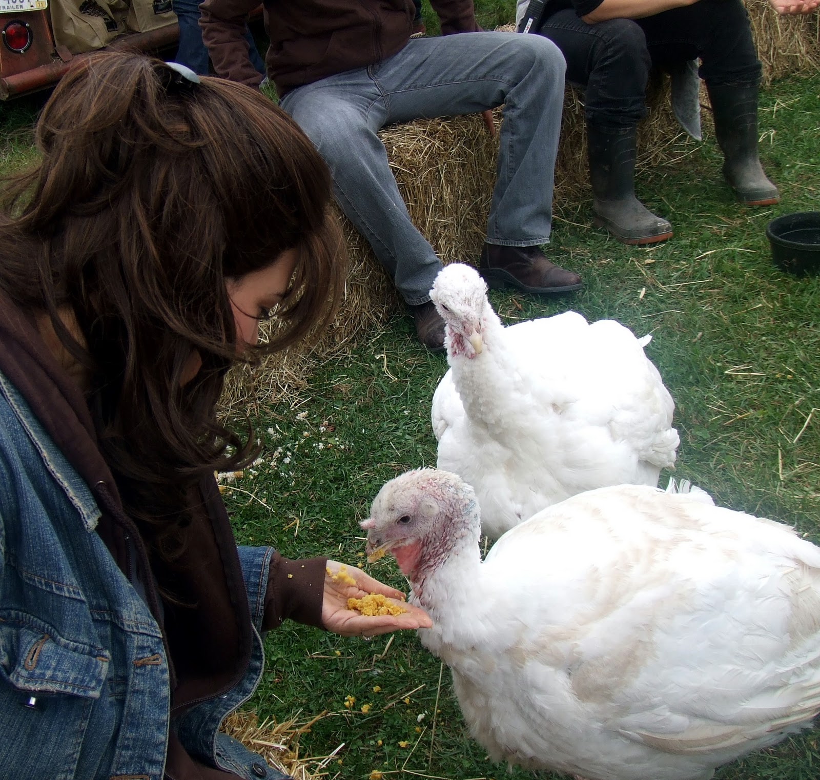 Trista and I got to feed these lovelies. We each had a hunk of cornbread which the feathered ladies gobbled right out of our hands!