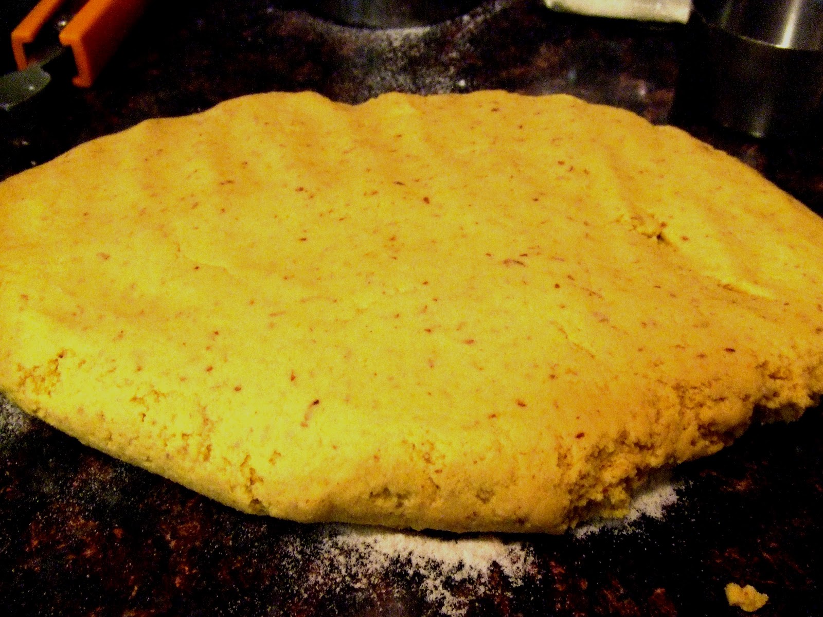 In a large bowl, combine the pumpkin, flour, potato starch, salt, flax gel and nutritional yeast. Mix until it forms a dough. Use your hands to mix the dough until all the ingredients are incorporated. The dough should stick to your fingers but not to the bowl.