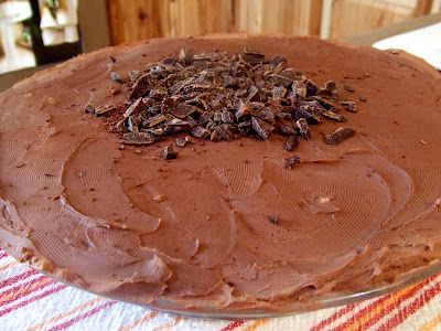 When the pie and filling have chilled, cover the pie with the chocolate whipped cream. Garnish with chocolate shavings, pretzels or your favorite topping. You can refrigerate the pie longer to let it set more or you can serve it right away. Enjoy!