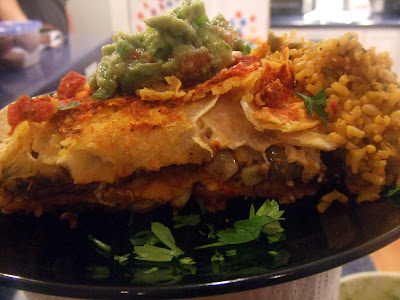 This is the kind of dish that tastes even better the next day so if you can, make it the day before you plan to serve it. You can garnish the lasagna with gucamole or vegan sour cream. Serve it with a salad or rice and you have a hearty, filling and decadent meal that’s muy delicioso.