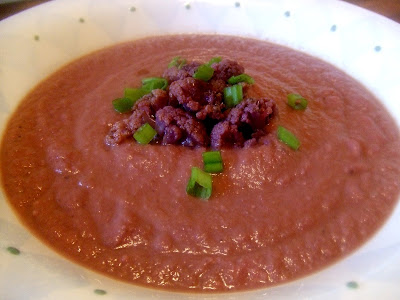 What could be prettier than starting the meal with my beautiful soup made with purple cauliflower? Creamy and delicious with a crunchy cheddar garnish.
