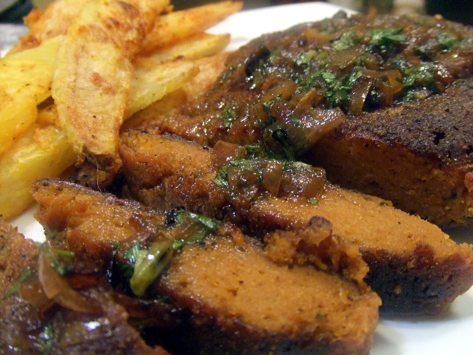 What a great challenge, though, for me to veganize! I love being able to show that I can make a very similar and delicious dish that is much healthier and more importantly, compassionate. The plan seemed simple: leave the cow alone and use seitan for the steak, swap out the butter for vegan butter and the fries would be oven-baked.