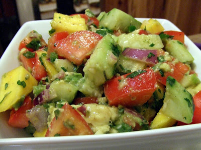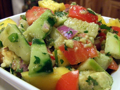On the side, I served a delicious mango-avocado salsa. Sweet mango, creamy avocado, crunchy cucumber and spicy jalapeno combine to make the most amazing dish that is bright and colorful and packed with flavor. The salsa makes a great side dish for lots of meals or would be refreshing all on it’s own.