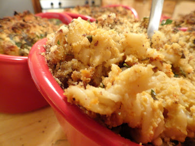 Preheat the oven to 400 degrees. Pour the sauce onto the cooked pasta and toss to combine. At this point you can just garnish with parsley and eat the mac and cheese this way. If you are baking it, transfer the mac and cheese to a baking dish or ramekins that have been sprayed with cooking oil. In a small bowl, combine the bread crumbs, oil and parsley. Top the mac and cheese with the bread crumb mixture. Bake for about 15 minutes or until the bread crumbs have browned. If the crumbs are taking too long to brown, turn the oven to broil for 5 minutes. You don’t want to bake it too long or it will get too dry. Serve while hot.