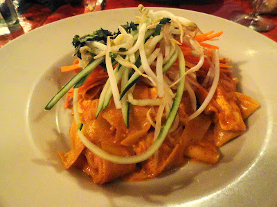 I found my new favorite dish of the summer – Hot Panang Curry and Noodles. I can’t tell you enough how much I love this dish. The curry sauce is spicy, strong but not overpowering. The tofu is soft and creamy, tender and flavorful. It’s topped with raw veggie strips to add a soothing, crunchy texture. I could eat this everyday!