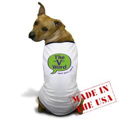 The official logo is available on a gazillion items in The “V” Word Gift Shop. Now you can have “V” Word clothing, hats, mugs, stickers, buttons, magnets, stationary, tote bags, thermoses, and pretty much any thing you could ever want the logo on. I, myself, am partial to the flask 🙂 There are, of course, dog shirts so your companion animals can show their vegan pride as well.