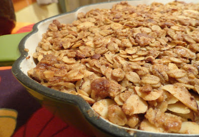 Bake for 25-30 minutes until the top is golden-brown and the fruit (if you can see it; I made a lot of topping) is bubbling. Remove from the oven and let set for about 10 minutes. Serve with vanilla ice cream, whipped cream or all by itself.