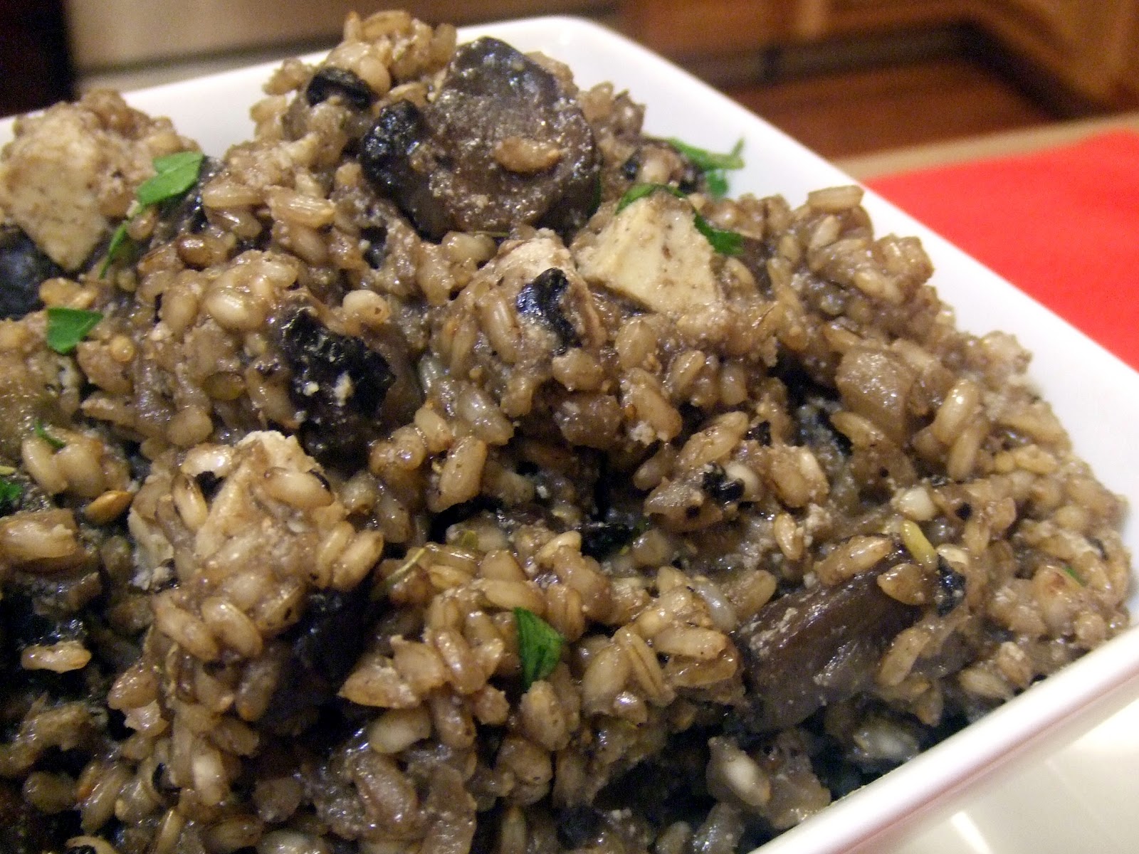 Brown Rice Risotto with Portobello Mushrooms and Soy Blue Cheese