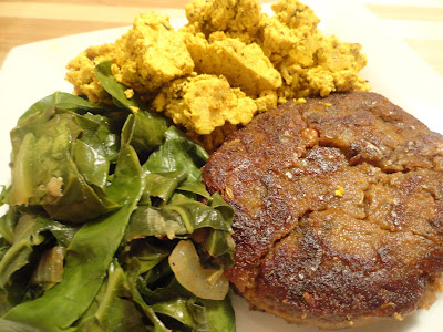 My Breakfast Sausage is flavorful, slighly sweet, slightly spicy and very yummy. I had mine on the side of a simple tofu scramble and sauteed greens.