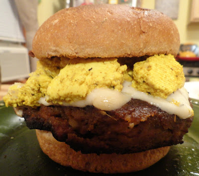 For Tom, I made a sausage, tofu scramble and melted vegan cheese breakfast sandwich on a bun.