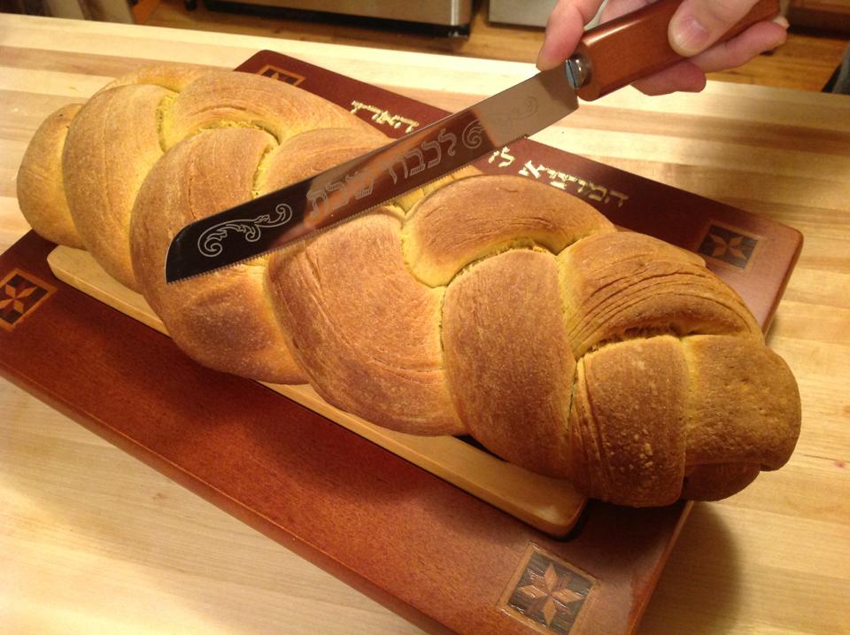 We made some braided loaves, some non-braided loaves, and even some rolls. We didn’t do this very often so when we made challah, we made a lot. By the time it was in the oven, it was late in the afternoon. Then the beautiful breads would sit on the table cooling while I anxiously waited to try a piece. In the evening, Mom would slice one of the loaves, slather it in butter and we would eat the rewards of our day-long project.