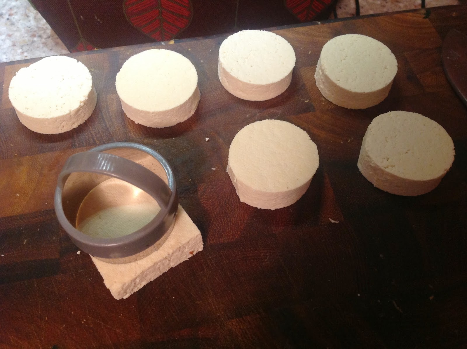 I appreciate the recipe. It would have been nice to see pics of how you cut it. I used a 14 oz. pack of tofu, and no way could I get 8 such huge circles out of it. 🙁