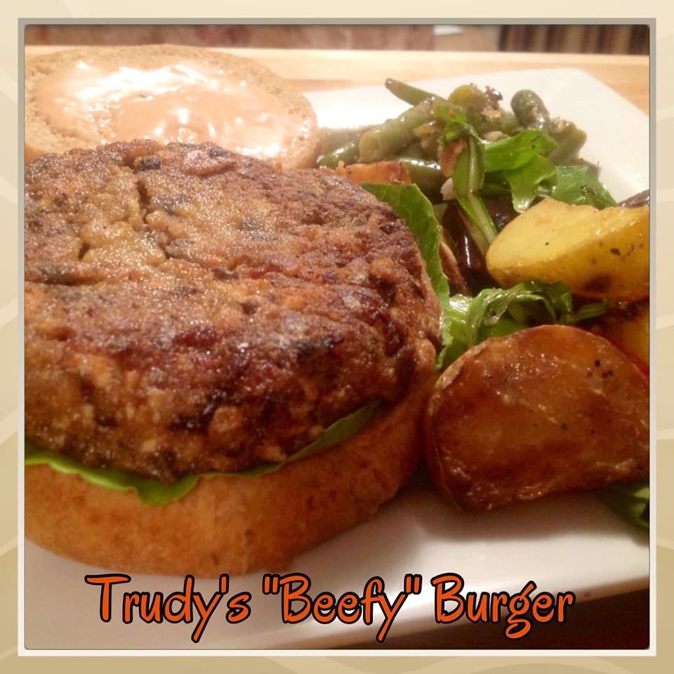 No cows were harmed in the making of these burgers and that’s all that matters to me…and to Trudy. Enjoy!