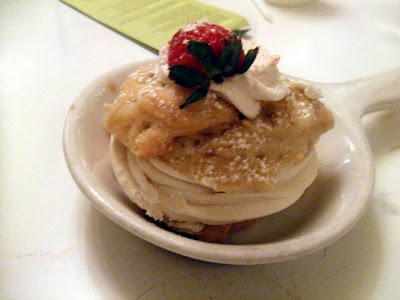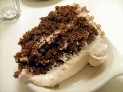 There is a huge dessert/bakery menu to choose from and seeing our struggle, our waitress, Talia (a very sweet young lady who looks like a young Alyssa Milano from Charmed), suggested we go look at the desserts in the counter up front. Tom ordered the chocolate ganache cake ($5.25) which I tasted (out of duty, of course). It was rich and sinfully decadent.