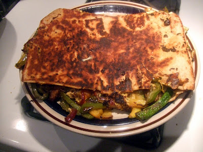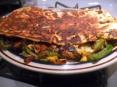 A trip to the health store yielded two healthy finds: Joseph’s Flax, Oat Bran and Whole Wheat Flour Lavash Bread (who says quesadillas have to be round?) and Ezekiel 4:9 Sprouted Grain Tortillas.