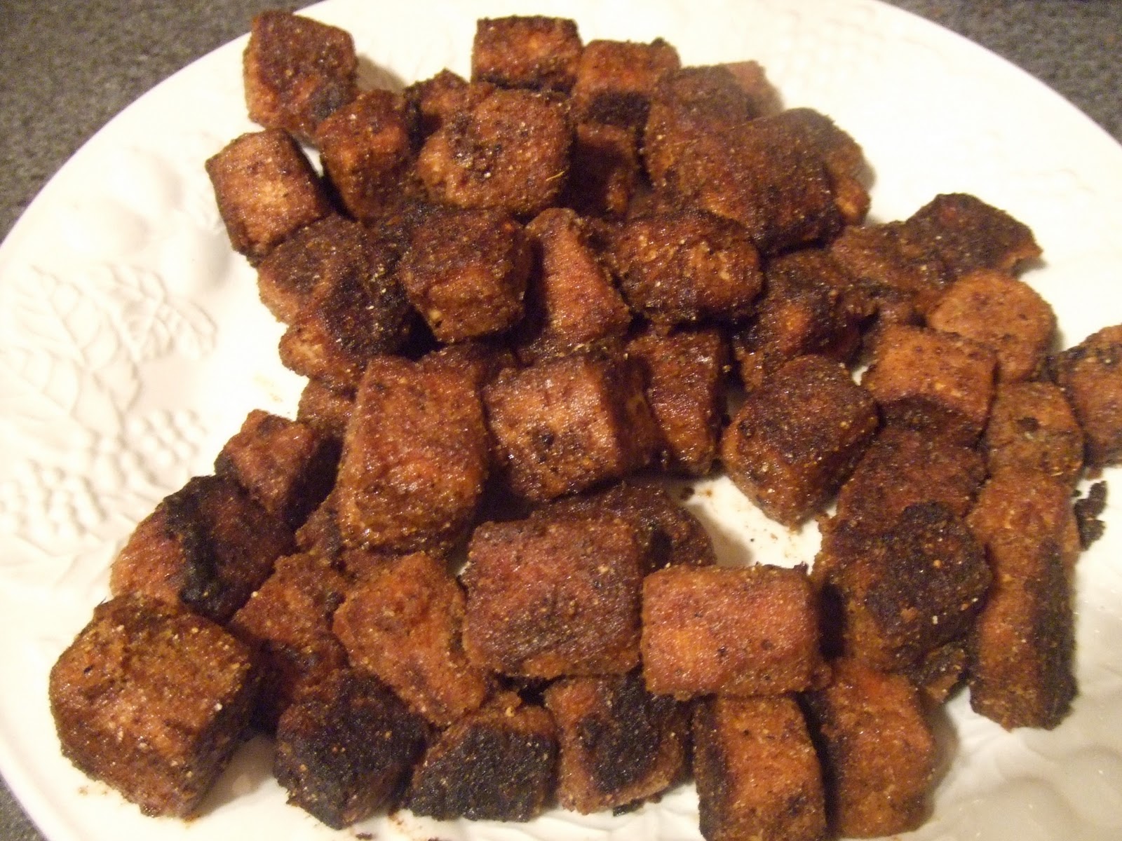 Heat a skillet with canola oil. Meanwhile, move the tofu cubes from the marinade into the breading mixture. Make sure the cubes are thoroughly covered and add to the skillet. Let cook until browned and crispy on all sides. Add oil as needed if the pan runs out. Cook the tofu in batches so the skillet is not overcrowded and it browns faster. Remove the tofu nuggets to a plate lined with paper towels to absorb any extra oil. Serve while hot.