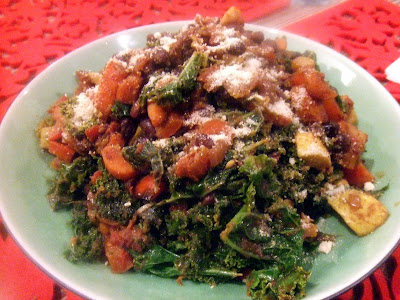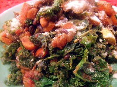 Large bunch of kale, collard greens or greens of your choice, stemmed and chopped