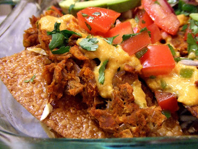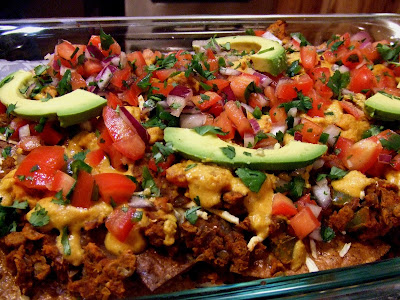 I love when I look up old recipes and see the evolution of my diet. In 2010 I made Baked Nachos with Picadillo as a healthy alternative to the nachos I used to eat in my pre-vegan days. And it was healthier – meat-free, dairy-free – and definitely cruelty-free. But I used processed Gimme Lean for the Picadillo, processed tapioca cheese and store-bought chips and condiments. Don’t get me wrong, they were delicious nachos but now I’m posting the Superbowl or even better, Puppybowl of Nachos and it’s all homemade!